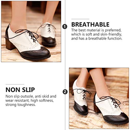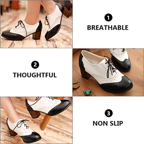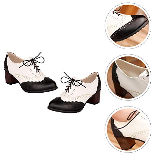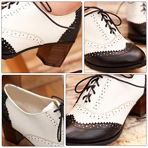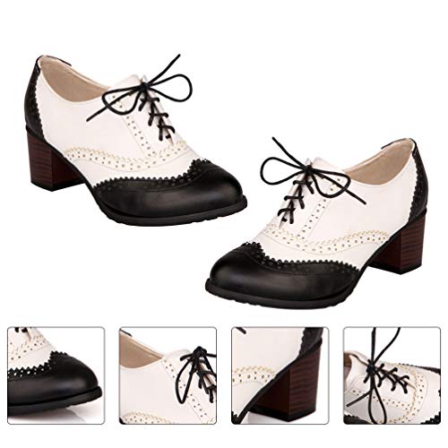 Specification: Holibanna 1 Paar Oxford Schoenen Met Hoge Hakken Pu Vintage Oxfords Wingtip Veters Blok Halfhoge Hak Pompen Schoenen…