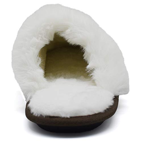 【DUURZAAM & COMFORTABEL】Sloffen vrouwen geselecteerde premium materialen, delicate stiksels en verwerking. Katoenen gewatteerde harige voering en fluwelen manchet zijn stevig bevestigd en vallen niet gemakkelijk af. De waterdichte rubberen zool is van toepassing op lichte wateroverlast gelegenheden binnenshuis. Dik zacht voetbed en verende onderkant zijn niet vatbaar voor abces of vervorming, wat een hoge slijtvastheid en lichtgewicht, gezellig lopen garandeert.