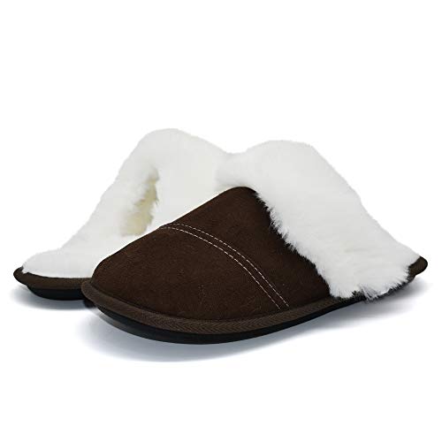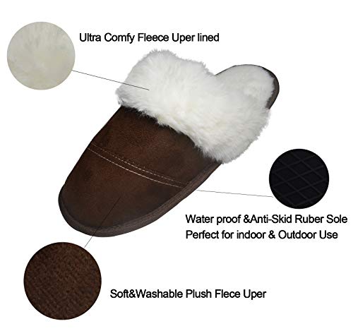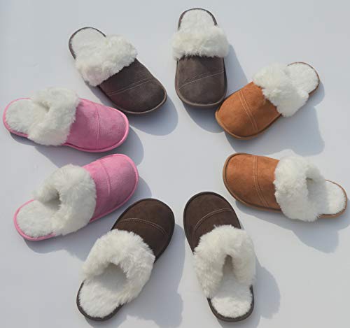 【SUÈDE GEVOERD BOVENSTUK】Sloffen dames gestikte suède overlays zijn gevoerd met katoenen doorgestikte tussenlaag en fluweel aan de binnenkant, wat zorgt voor een echt warme en uitstekende stretch, die je voeten nooit drukt of pijn doet. flexibele en ademende materialen houden je voeten comfortabel, deodorant en verfrissend. De pluizige kraag van namaakbont voelt soepel en gezellig aan en zorgt voor een geweldige vrije tijd in het huishouden.