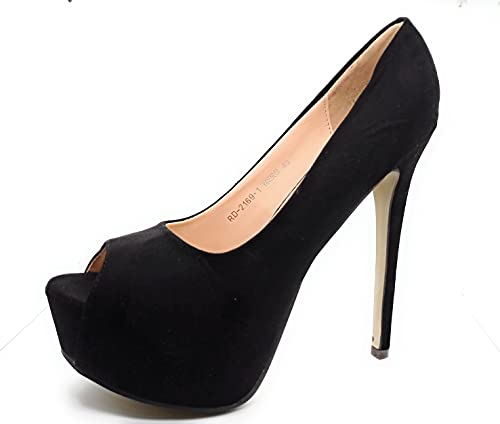 Mooie damesschoenen met hoge hak, plateau, bedekt ca. 5 cm met prachtige hak van 15 cm. – Kleuren: zwart, beige en rood. – Kunstsuède, synthetisch
