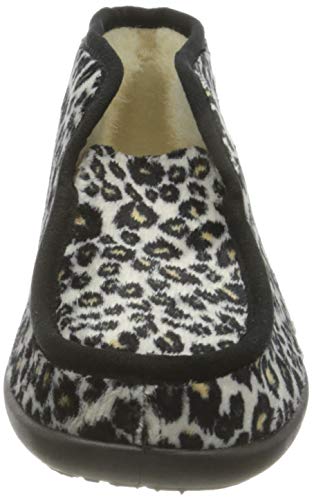 Knuffelige dameshuisschoen van RoHDE van microvelour. Deze huisschoen wordt door zijn trendy luipaardlook een echte blikvanger. Door de warme scheerwolvoering zullen je voeten nooit meer koud worden. De antislipzool biedt een goede grip. Comfortabele breedte G!