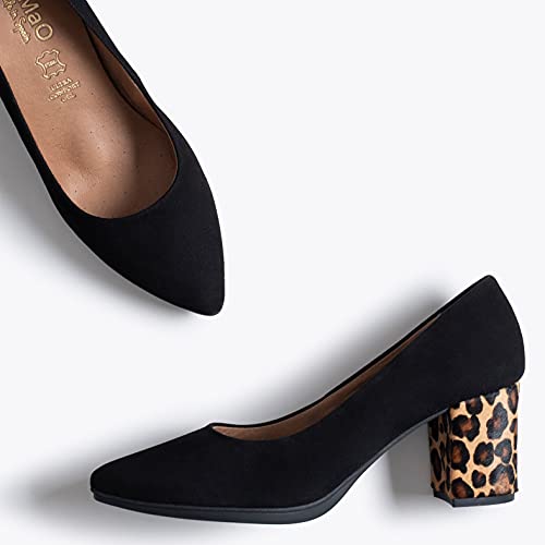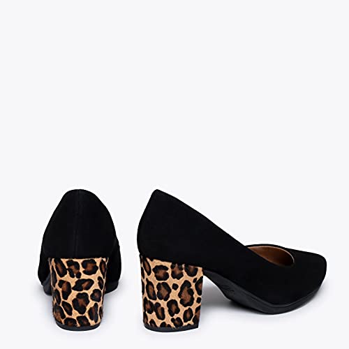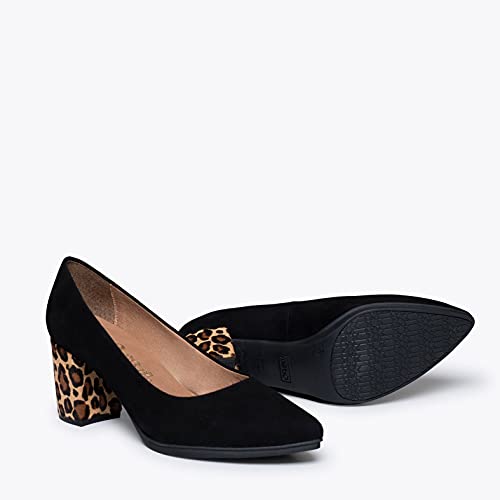 ur new Urban S WILD will become your favorite mid heel shoe because of the animal print heel. Choose comfortable black suede women’s shoes for this Fall Winter 21-22. These mid heels are designed to be worn for hours, thanks to our Ultra Comfort Gel insole with a Gel Drop system that will pamper and take care of your feet with every step you take.