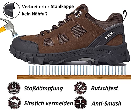 Specification: SUADEX Veiligheidsschoenen Heren Dames Werkschoenen Lichtgewicht Safety Shoes, Bruin 39 EU
